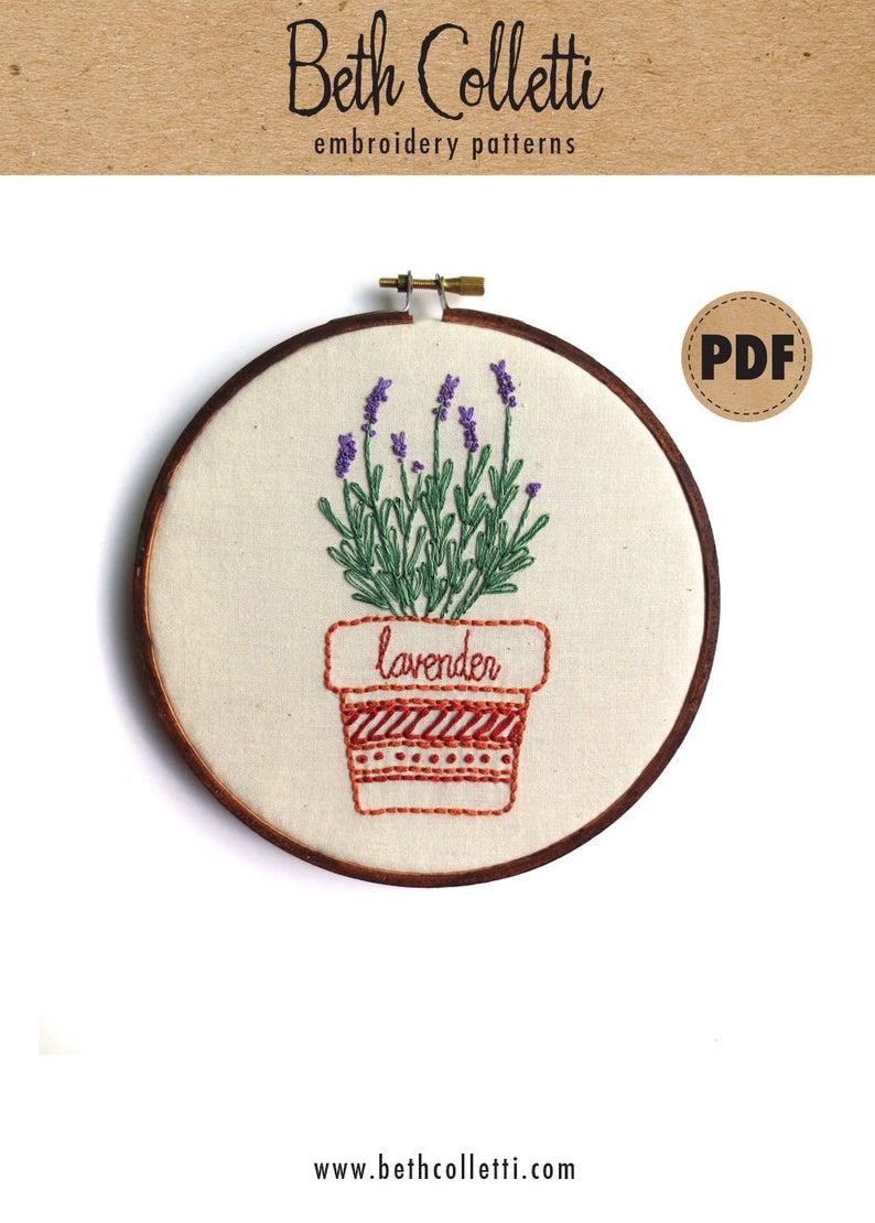Herb Embroidery Patterns Lavender Pdf Embroidery Pattern Herb Art Embroidery Design Herb Garden Wall Hanging Potted Herbs Plant Lover Digital Download