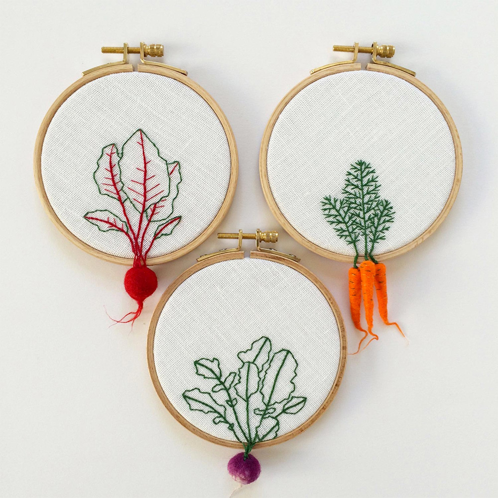 Herb Embroidery Patterns Felted Veggies Cling To Embroidery Hoops Veselka Bulkan Colossal