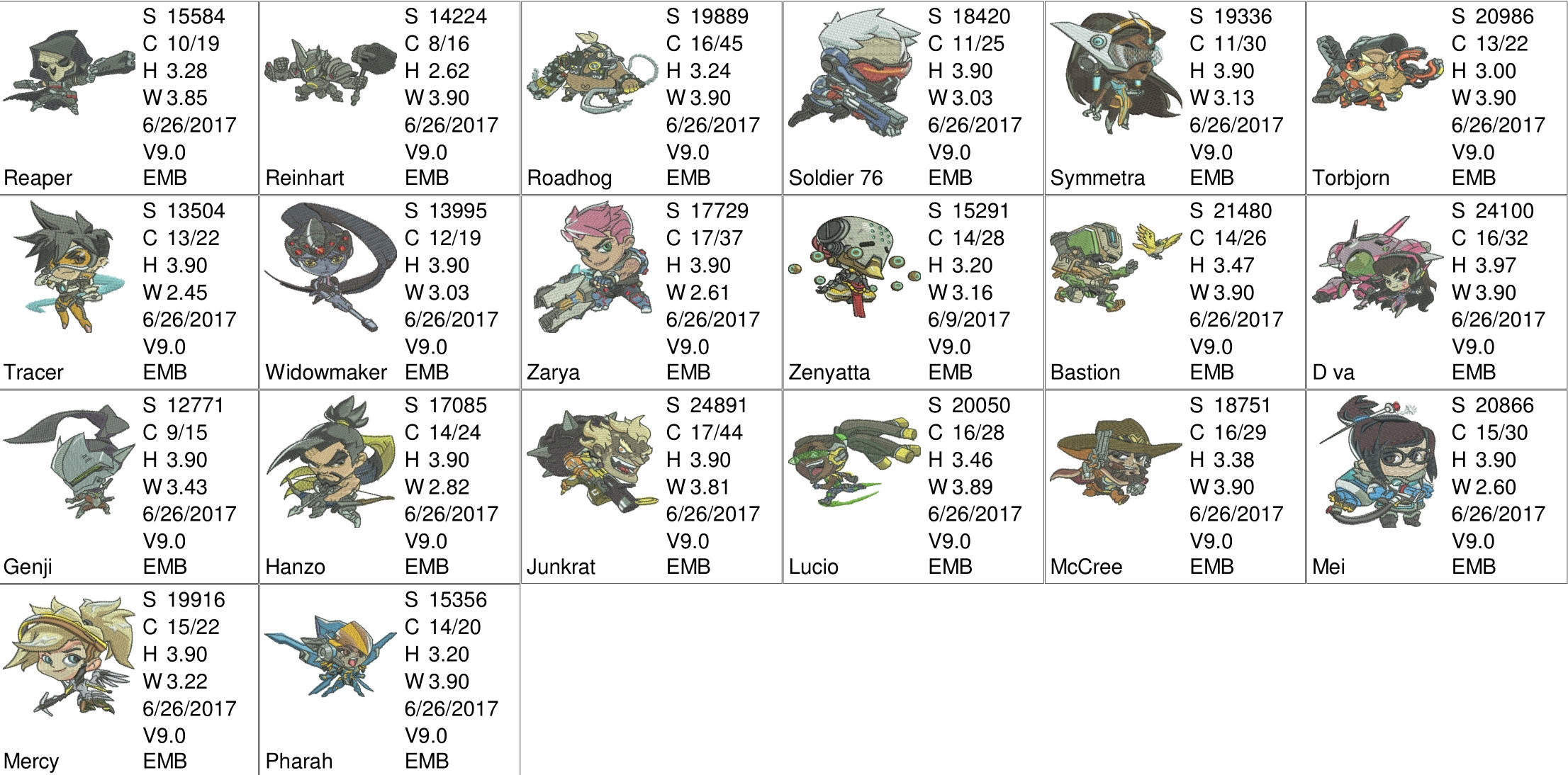 Herb Embroidery Patterns 50 Off Overwatch Embroidery Designs 20 Individual Characters For 4x4in Hoop Resizable With Freely Downloadable Software