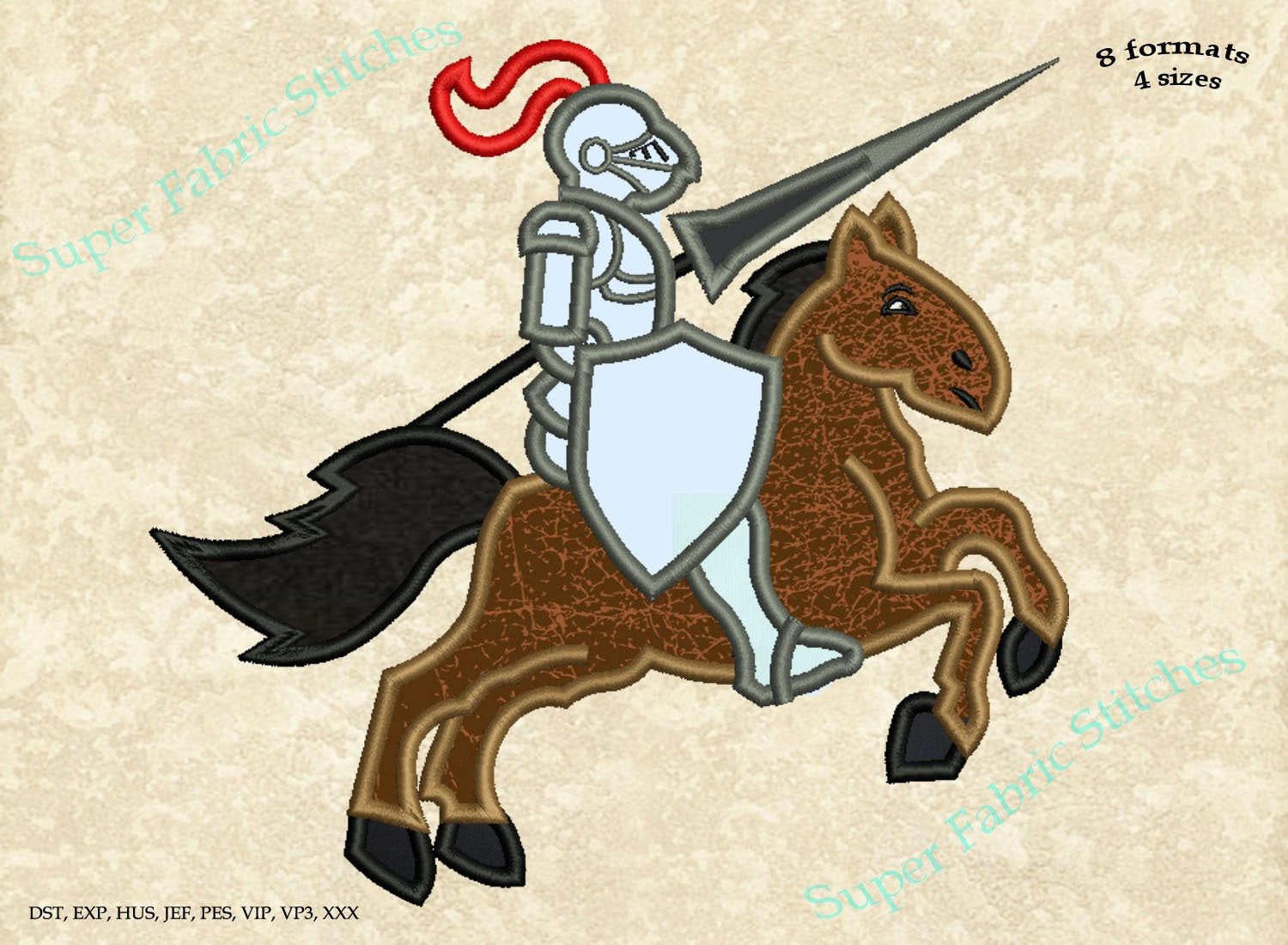 Horse Embroidery Patterns Knight Machine Applique Embroidery Designs Knight With Horse Embroidery Designs Digital Instant Download File 8 Formats In 3 Sizes 132