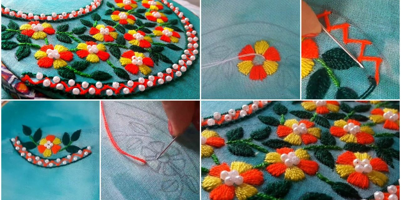 How To Make An Embroidery Pattern How To Make Beautiful Round Neck Embroidery Designs Simple Craft Ideas