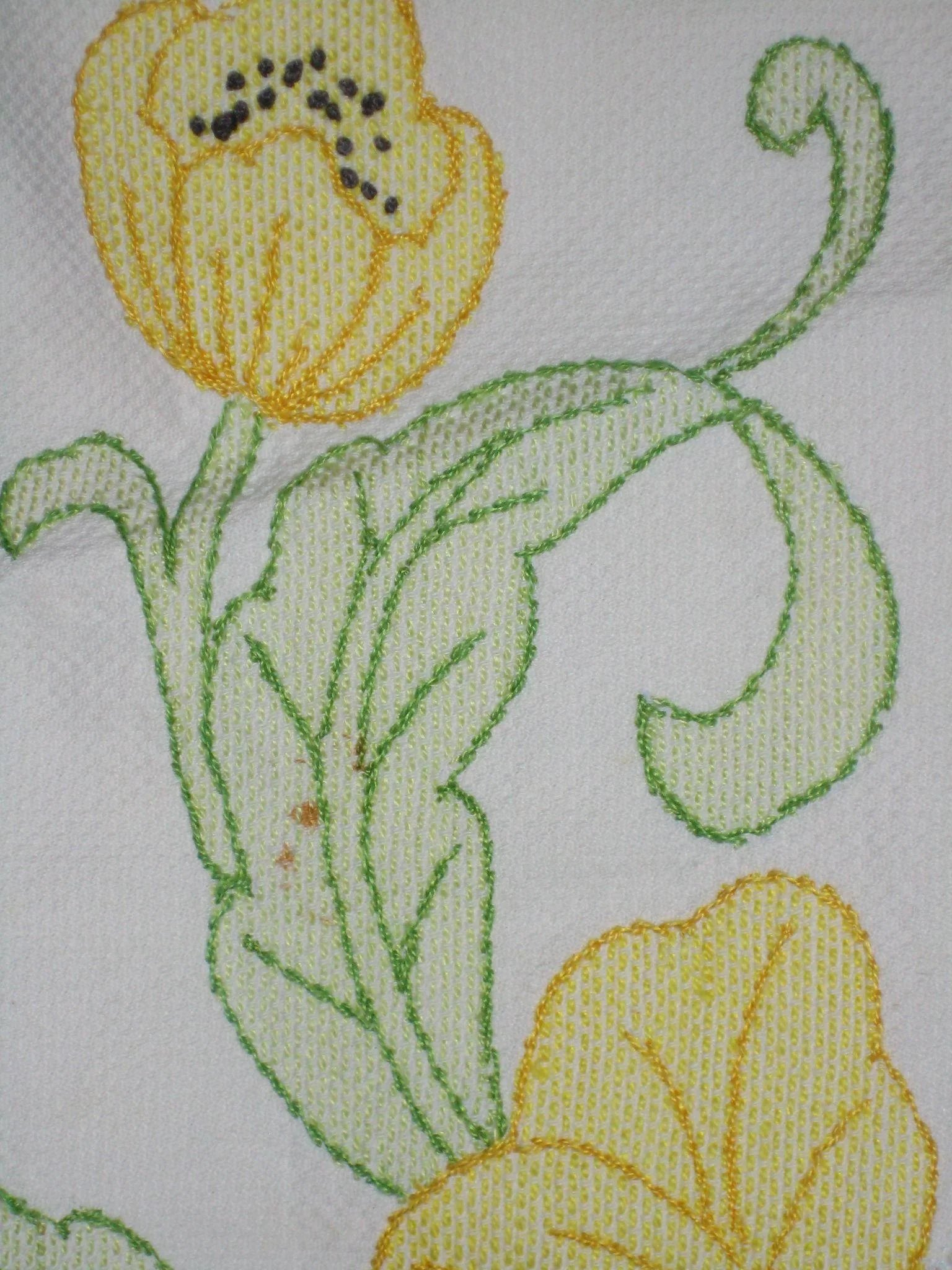 Huck Embroidery Free Patterns Vintage Tea Towel With Swedish Weaving Or Huck Embroidery Yellow Flowers