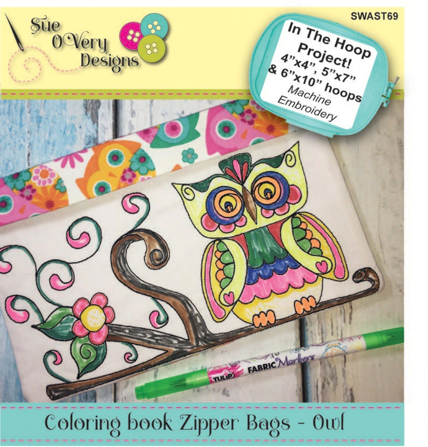 In The Hoop Embroidery Patterns Sue Overy Designs Owl Coloring Book Zipper Bags In The Hoop Embroidery Cd