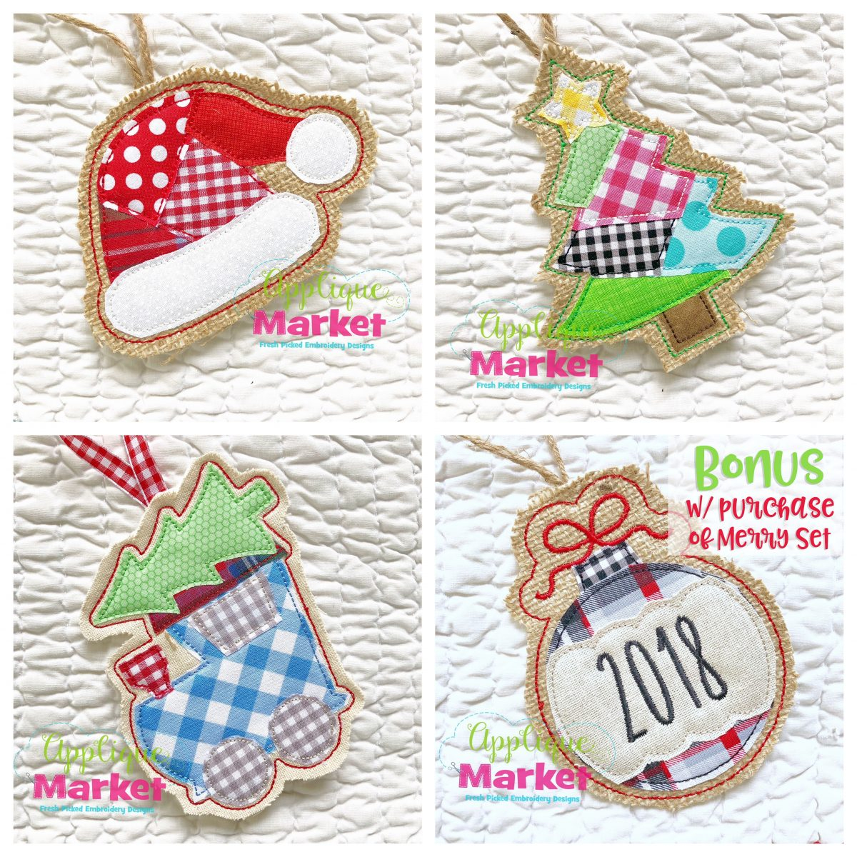 In The Hoop Embroidery Patterns In The Hoop Ornament Merry Set