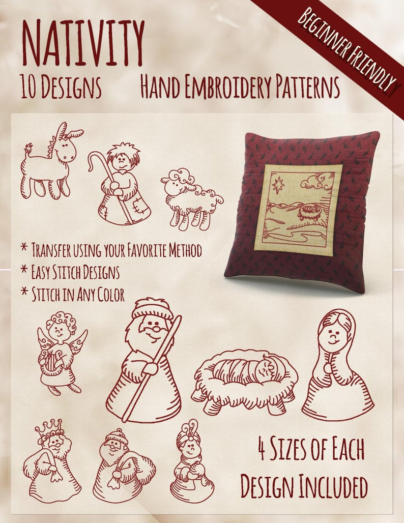 Embroidery Patterns For Sale Sale Hand Embroidery Patterns Redwork Designs Nativity Joseph Mary Ba Jesus And More In 4 Sizes Pdf Instant Download