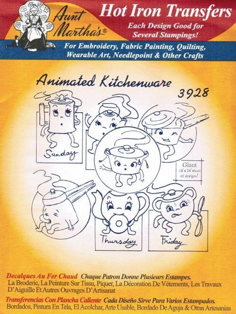 Iron On Transfer Patterns For Embroidery Animated Kitchen 3928 Aunt Marthas Hot Iron Embroidery Transfer Pattern