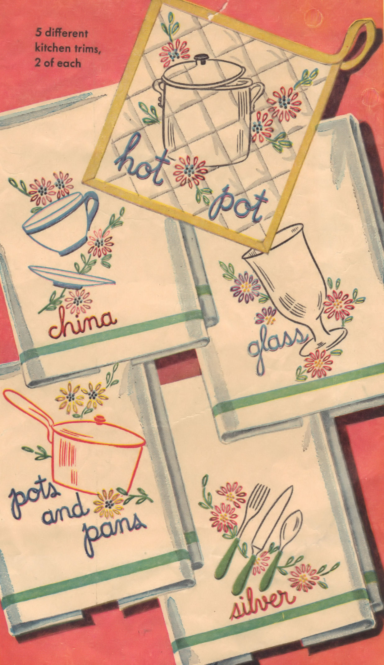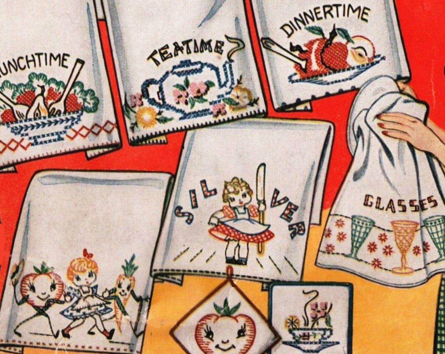 Kitchen Towel Embroidery Patterns Vintage Tea Towel Embroidery Pattern Diane 127 Pdf Instant Download Mid Century Kitchen Kitschy Kitchen Towel Set 7 Dish Towels Retro Towels