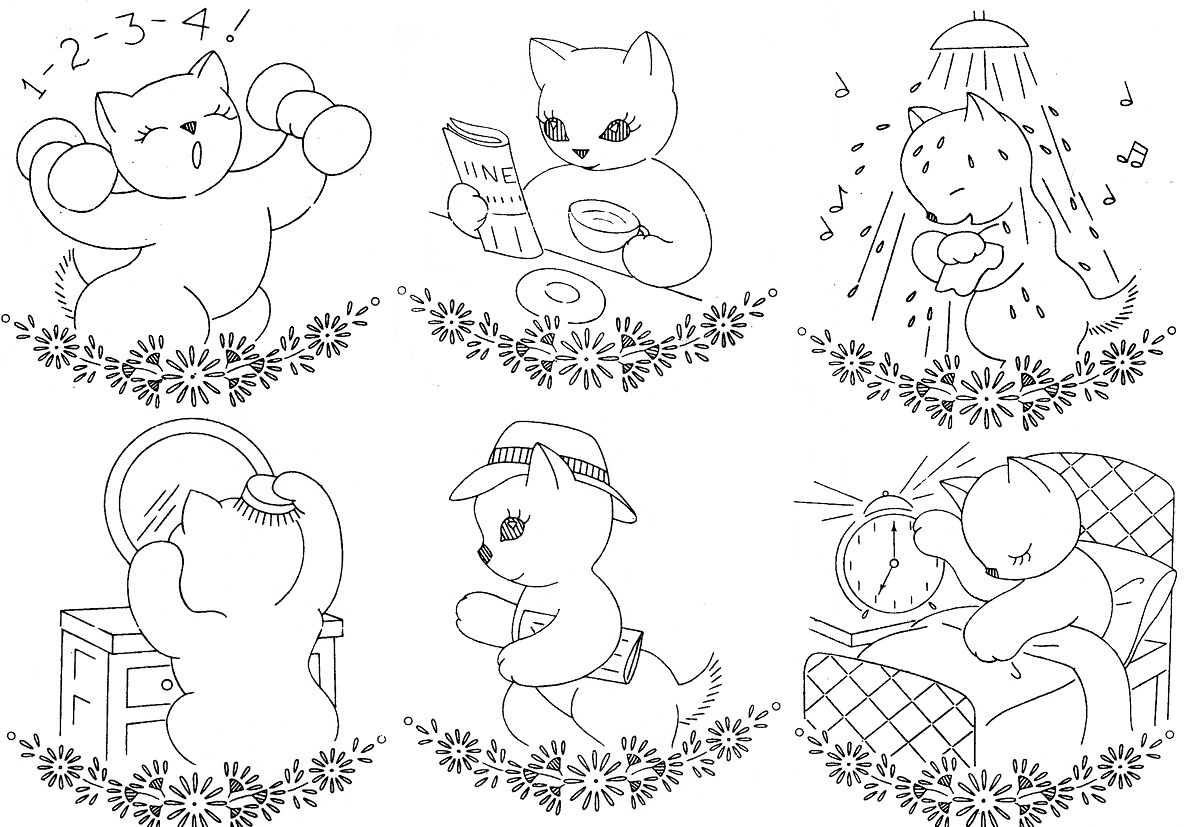 Kitchen Towel Embroidery Patterns Cats In The Kitchen Vogart 694 Pdf Download Embroidered Cats Kitchen Cats Kitchen Towels Pattern Vintage Tea Towel Embroidery Pattern