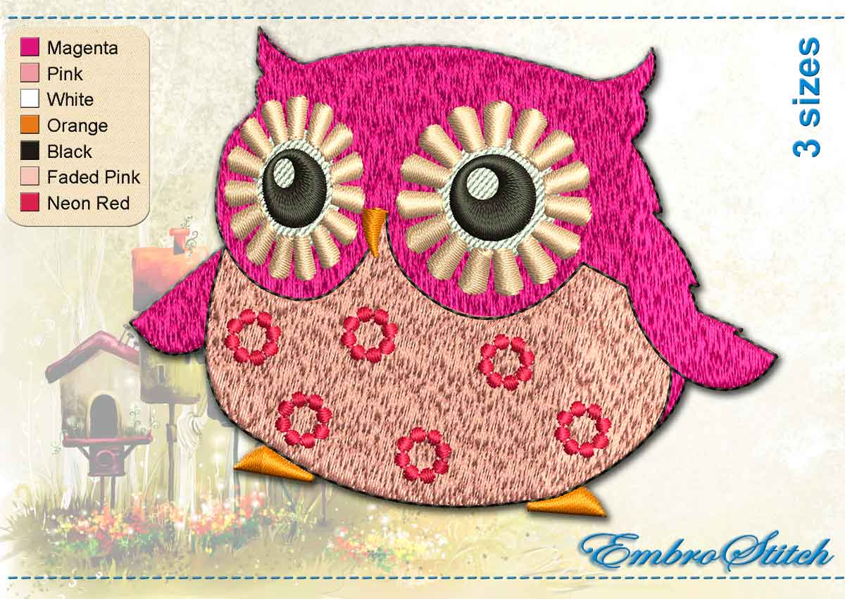 Owl Embroidery Pattern Pink Owl Embroidery Design 3 Sizes Owl Embroidery Pattern Pink Owl Embroidery Design 3 Sizes