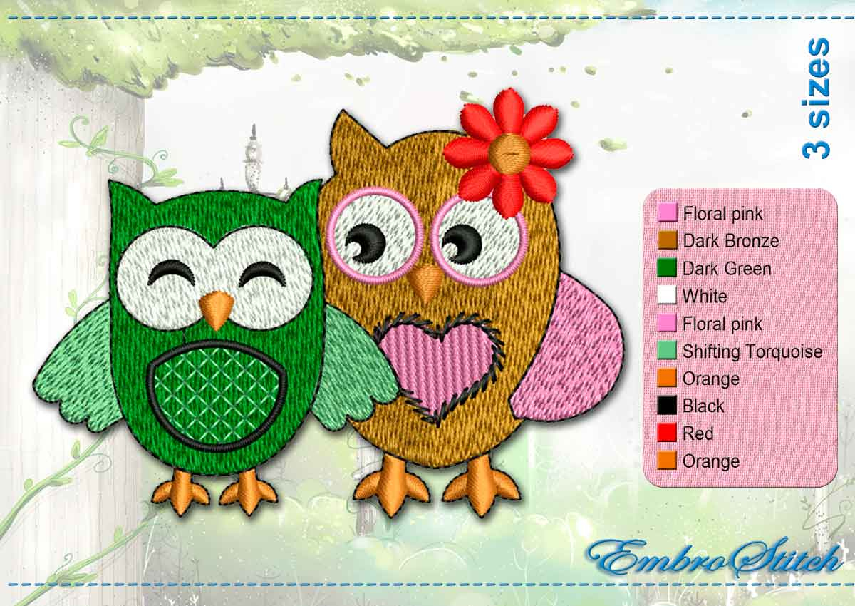 Owl Embroidery Pattern Pair Of Owls Embroidery Design 3 Sizes Owl Embroidery Pattern Pair Of Owls Embroidery Design 3 Sizes