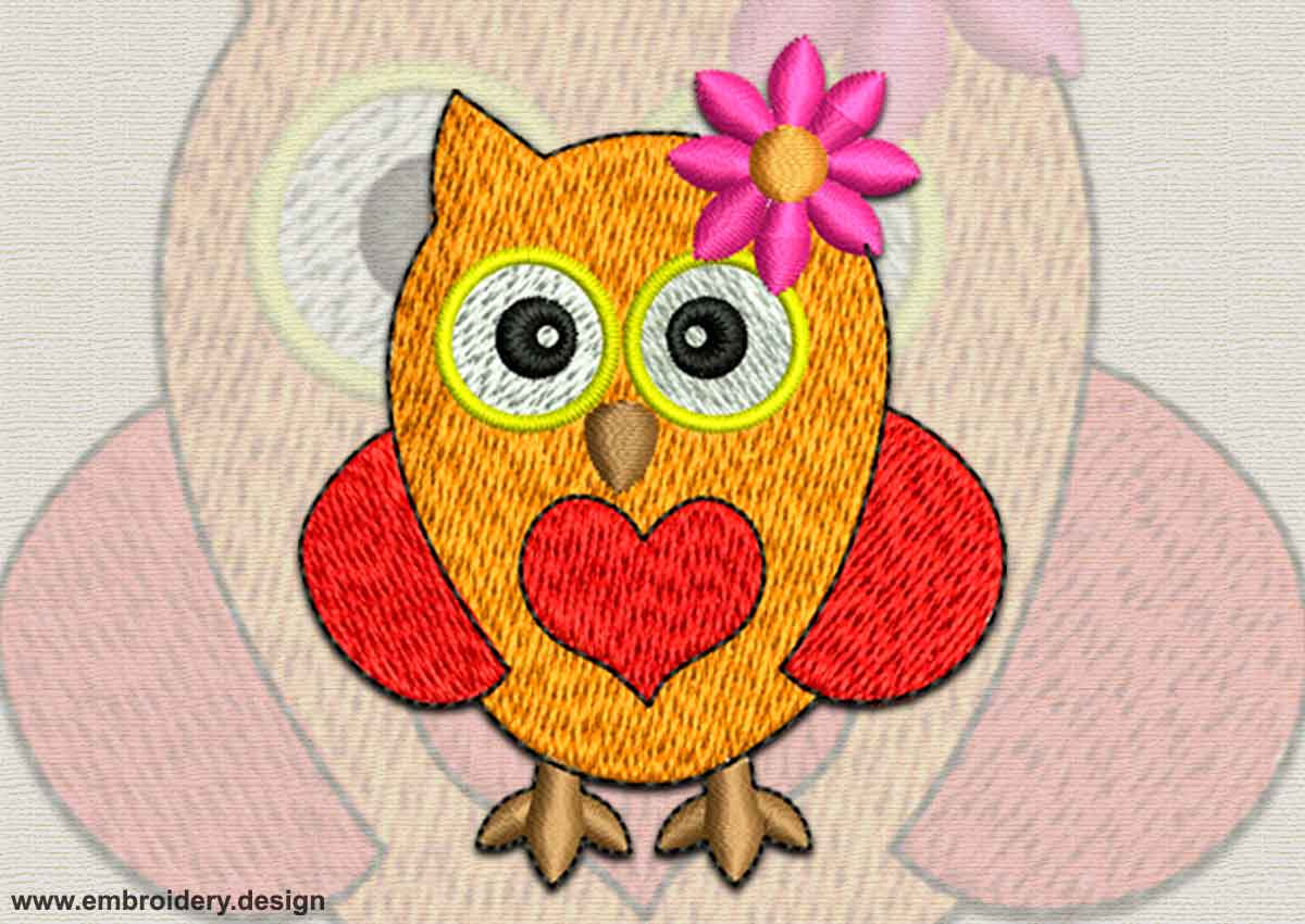Owl Embroidery Pattern Lady Owl With A Heart Owl Embroidery Pattern Lady Owl With A Heart