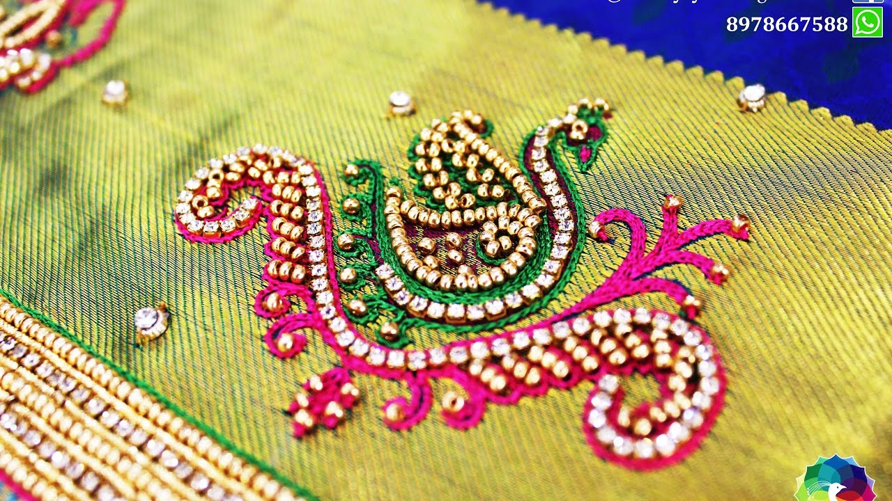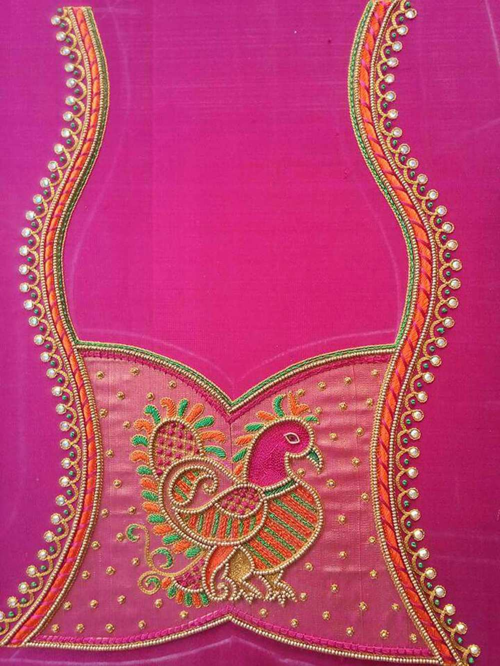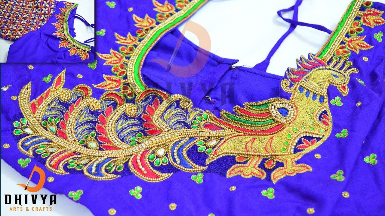 Peacock Hand Embroidery Pattern Rk Hand Embroidery Peacock Aari Work Blouse Neck Design Embroidery