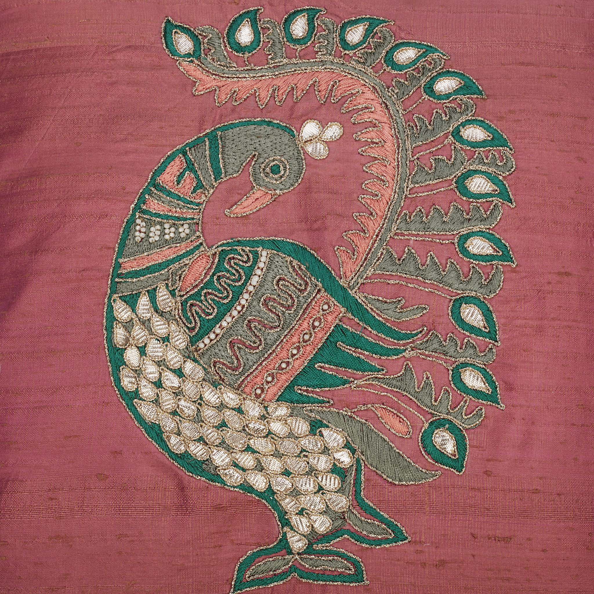 Peacock Hand Embroidery Pattern Cushions Khadi Silk Gotta Patti Peacock 16 Multi Rangsaga