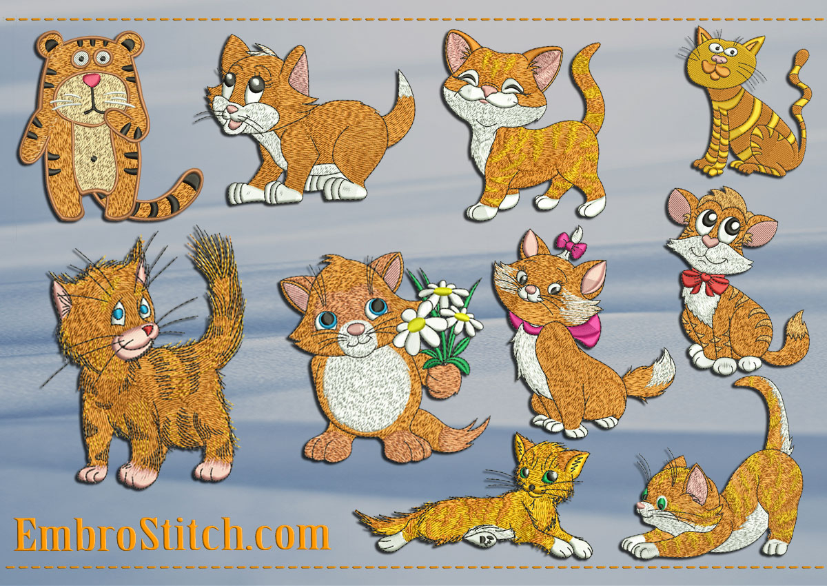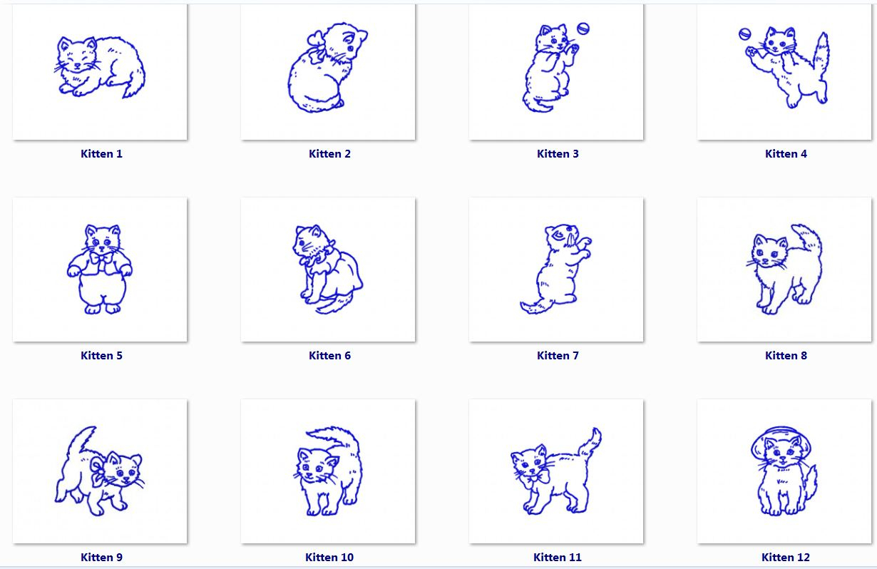 Kitten Embroidery Patterns Grey Kittens And Cats Embroidery Designs Pack 1 Collection Of 10