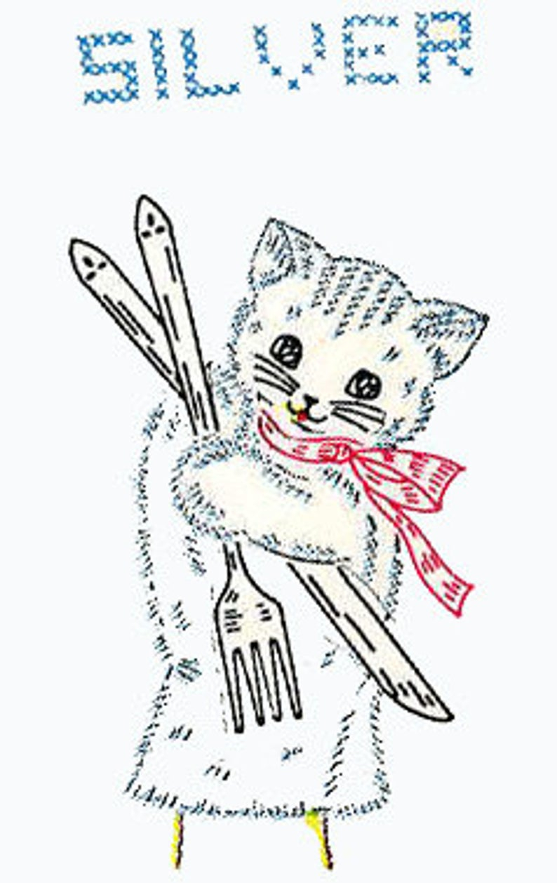 Kitten Embroidery Patterns Old Embroidery Pattern Vogart 294 Puppy Bear Kitten For Kitchen Towels Birds For China Glass Sliver Instant Pdf Download