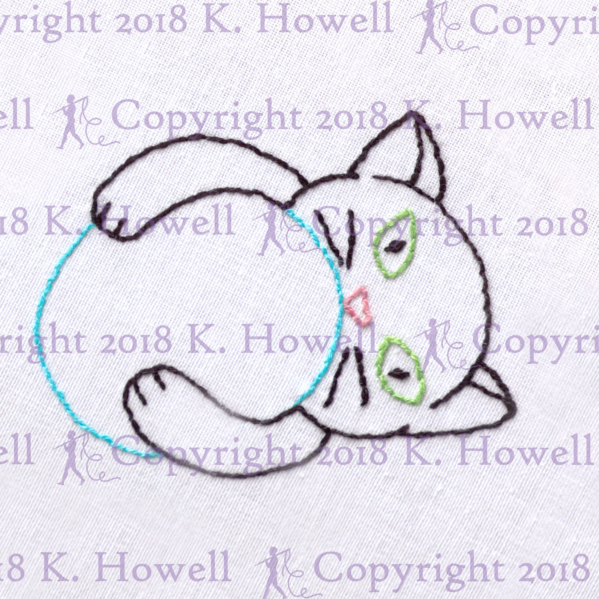 Kitten Embroidery Patterns Cat Hand Embroidery Pattern Kitten Cat Kitty Cute Cartoon Derpy Play Playful Ball Toy Color Small Fun Pet Feline Animal Pdf