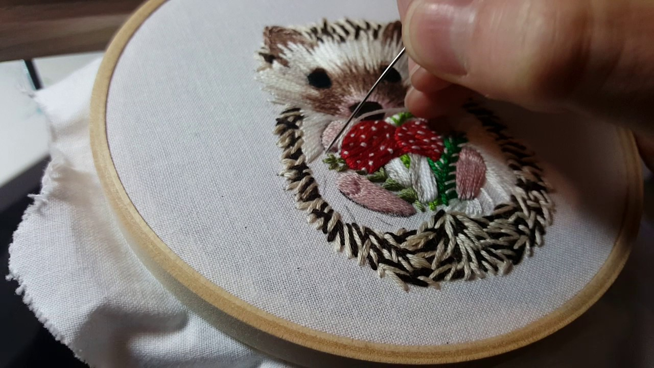 Kitten Embroidery Patterns Thread Painting Hedgehog Hand Embroidery