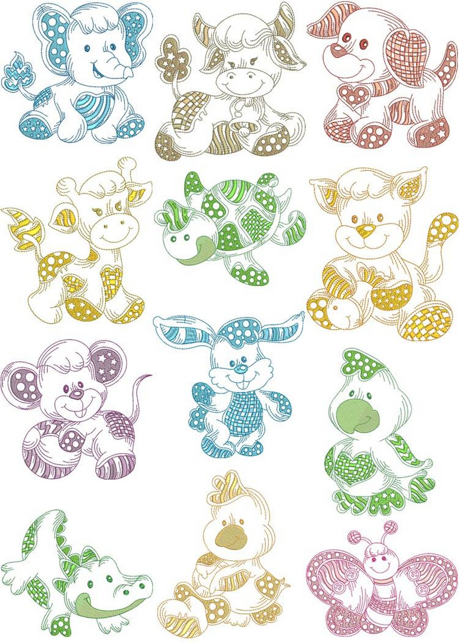 Sewing Machine Embroidery Patterns Patched Up Animal Pals