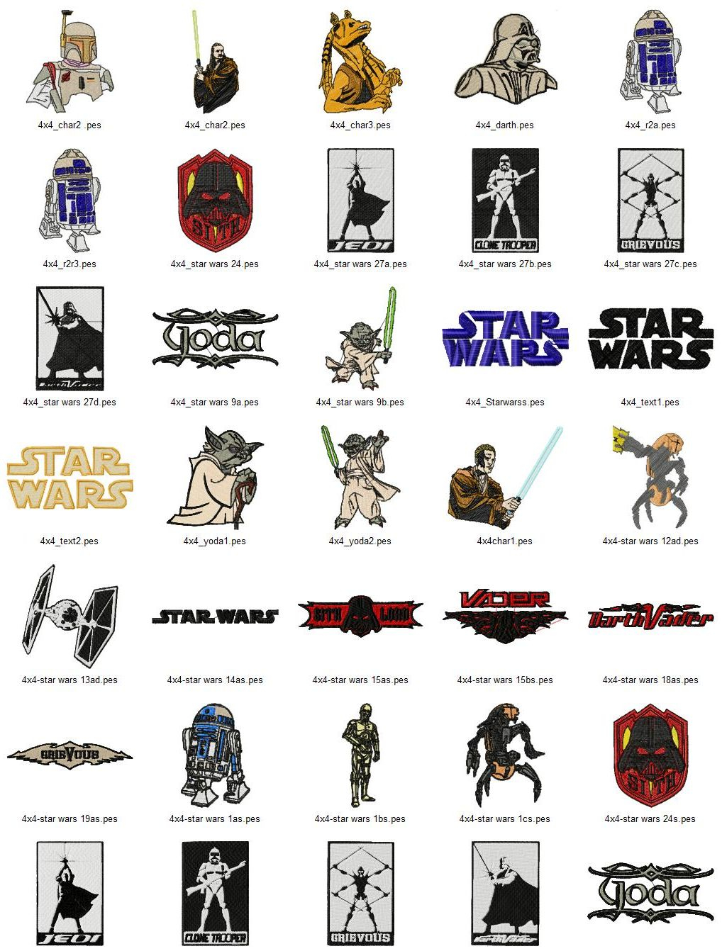 Sewing Machine Embroidery Patterns Star Wars Embroidery Designs Set 2 Sizes