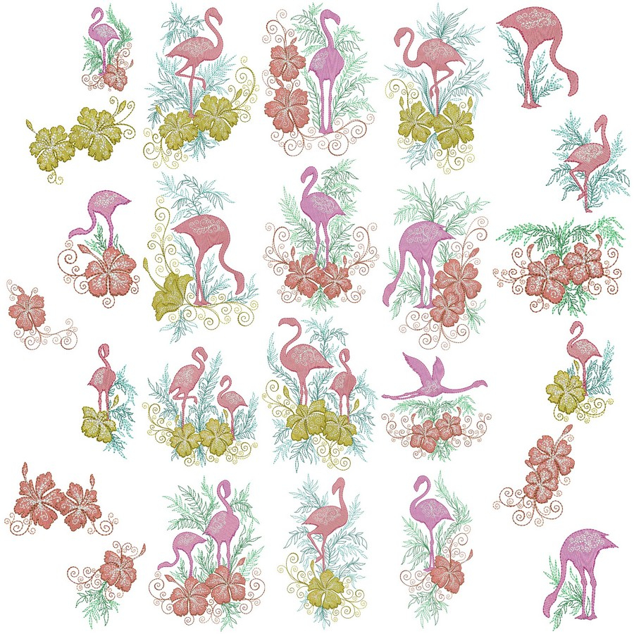 Sewing Machine Embroidery Patterns Flamingos And Hibiscus