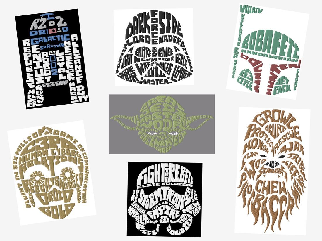 Star Wars Embroidery Pattern Star Wars Cloud Text Art Embroidery Designs Set 3 8×10 Hoops