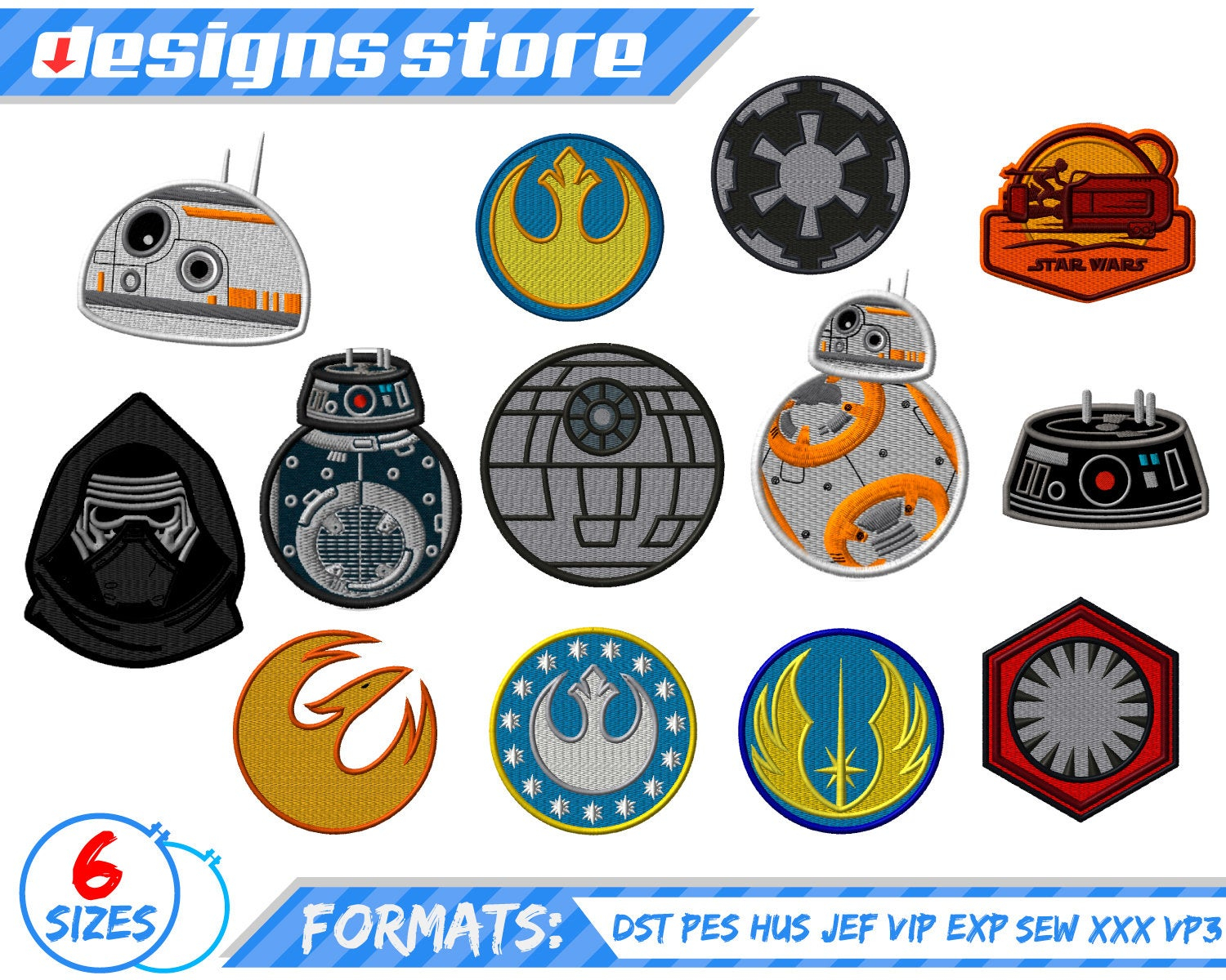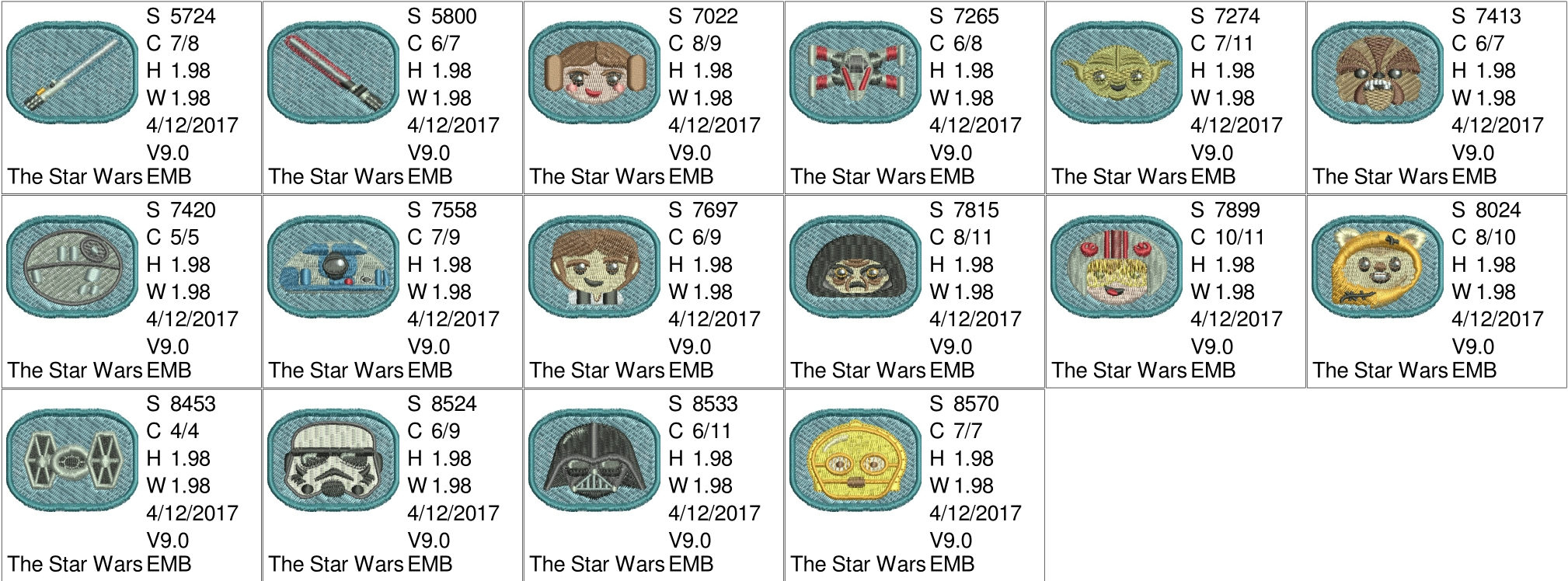 Star Wars Embroidery Pattern Star Wars Emojis Machine Embroidery Designs 16 Resizable Designs For Badges Key Fobs Tshirts Hats Towels Bibs