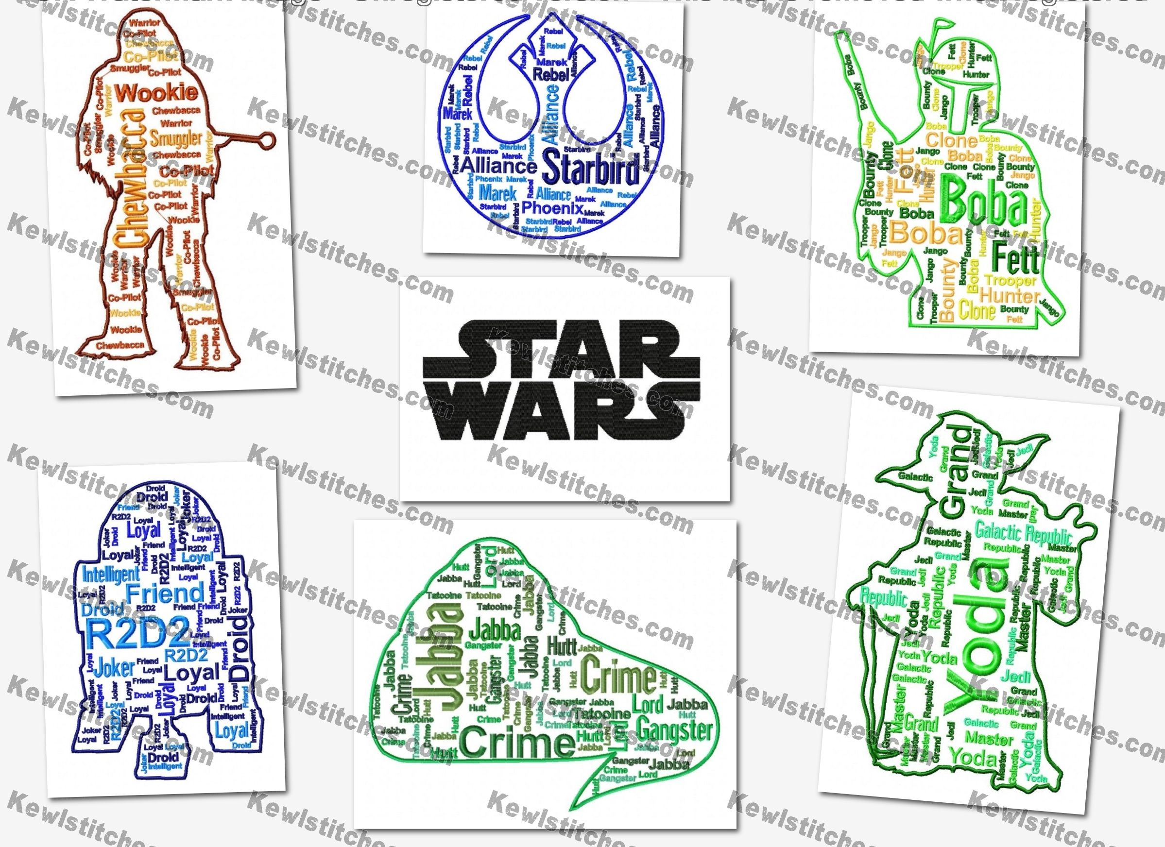Star Wars Embroidery Pattern Jumbo Star Wars Text Art Embroidery Designs Set 2 Sizes