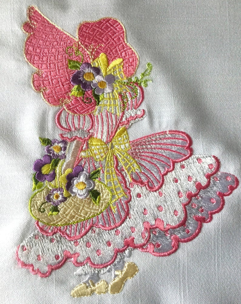 Sunbonnet Sue Embroidery Patterns Sunbonnet Sue Embroidery Block Pink Bonnet Fiber Art Embroidery Pattern Little Girls Decorations Flower Baskets Embroidery Design