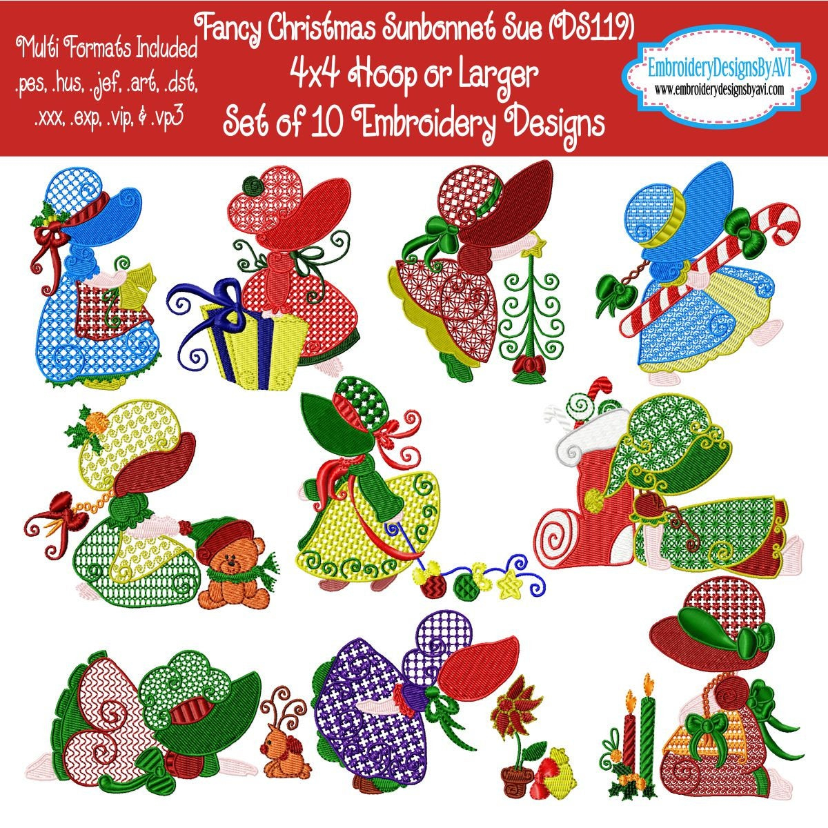 Sunbonnet Sue Embroidery Patterns Fancy Christmas Sunbonnet Sun Bonnet Sue Machine Embroidery Designs Set Of 10 Instant Download Sale