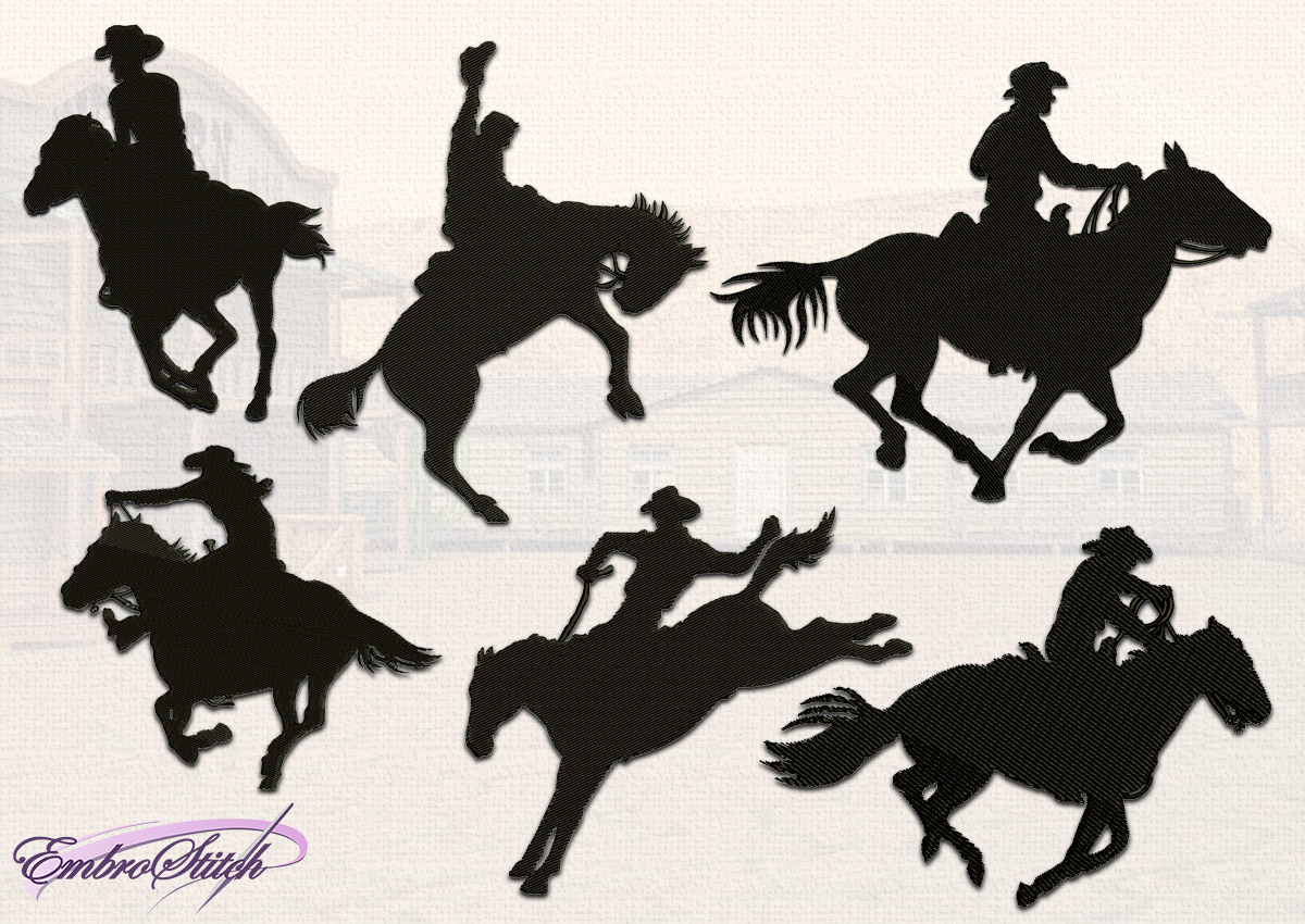 Western Embroidery Patterns Cowboy Silhouettes Embroidery Designs Pack 6 Qty