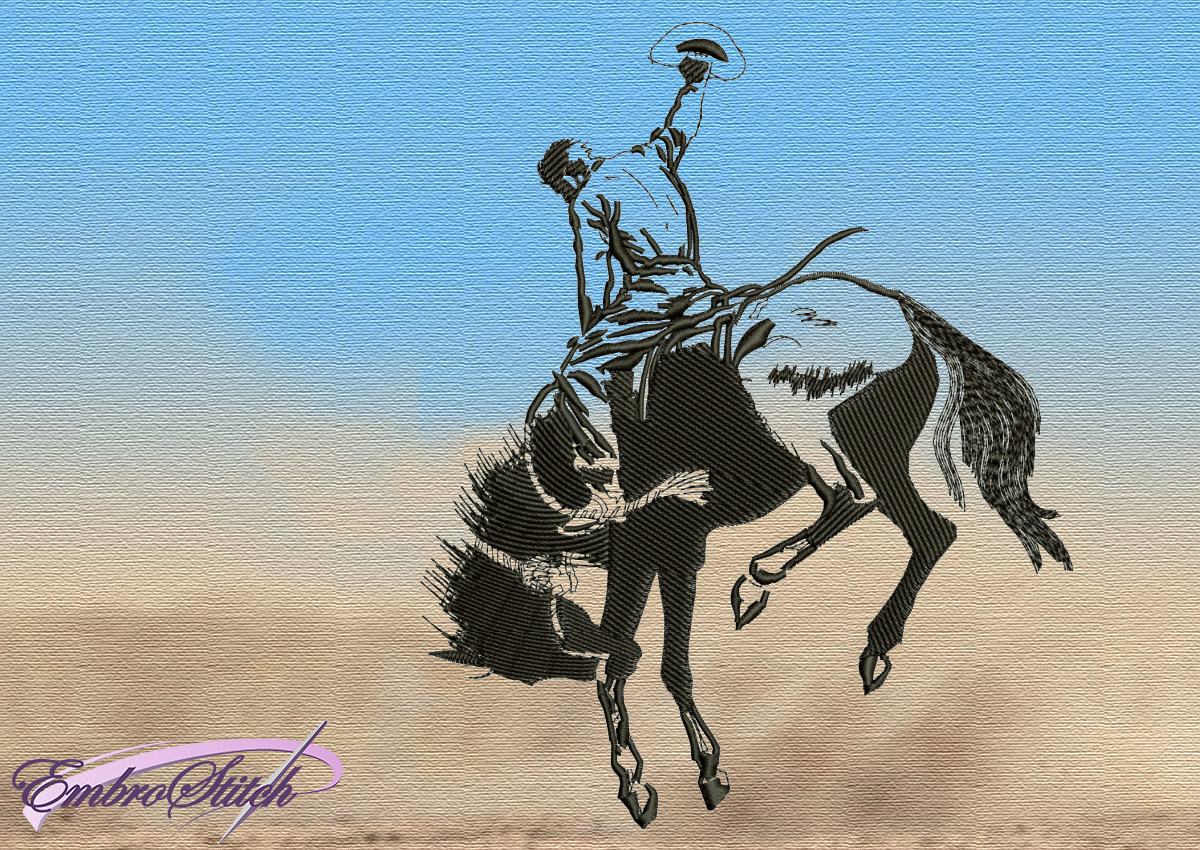 Western Embroidery Patterns Cowboy And A Stubborn Horse Embroidery Design 3 Sizes