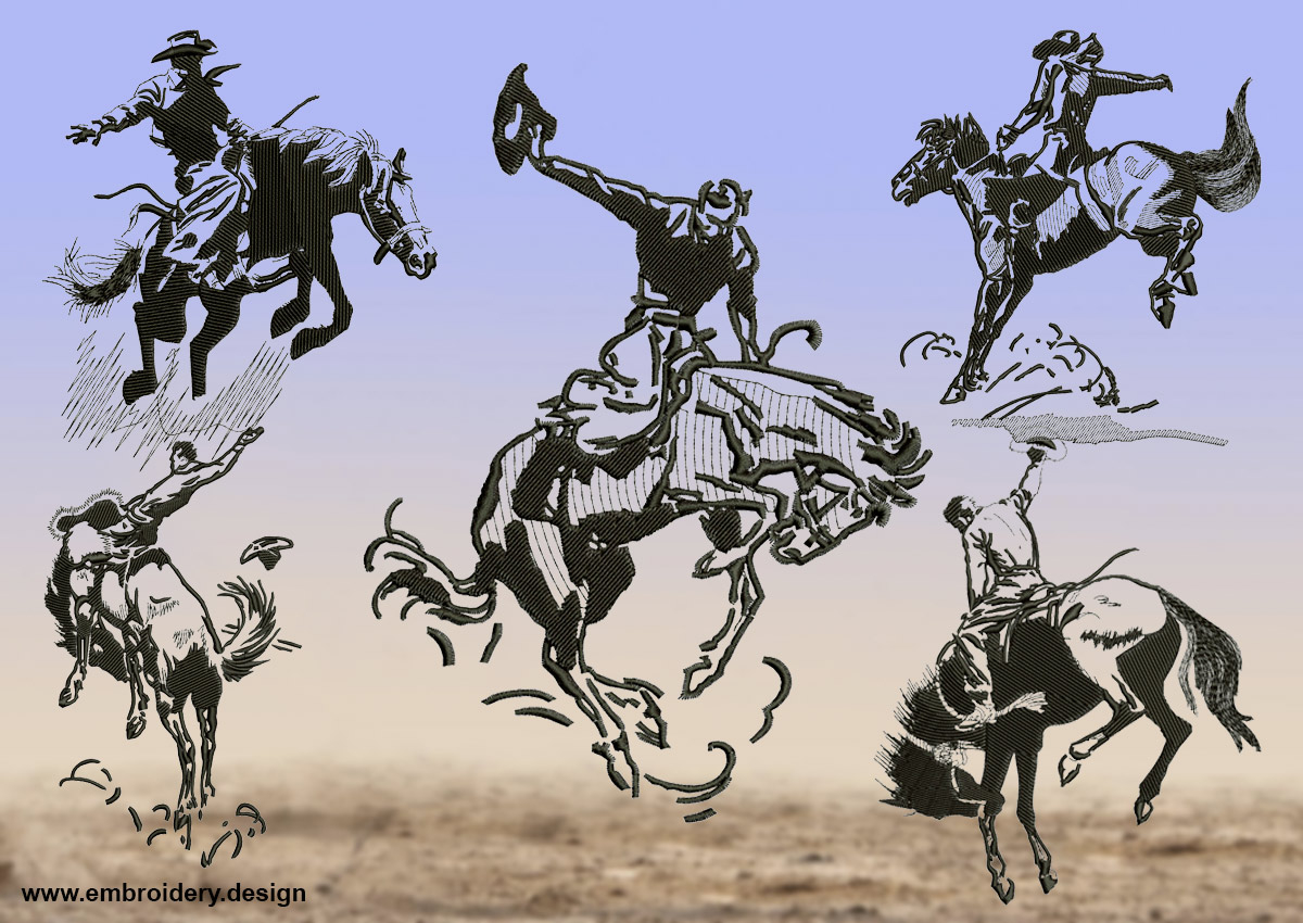 Western Embroidery Patterns Cowboys Taming Obstinate Horses Embroidery Designs Pack 5 Qty