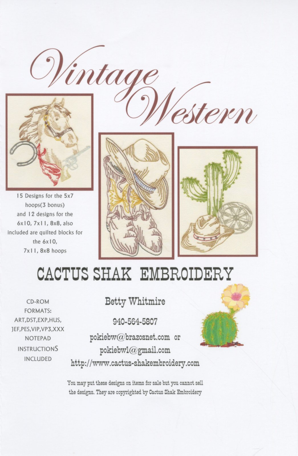 Western Embroidery Patterns Cd Vintage Western