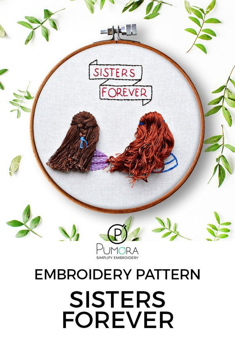 Hand Stitch Embroidery Patterns Friend Embroidery Pattern Modern Hand Stitching Template Sisters Forever Gift For Sisters